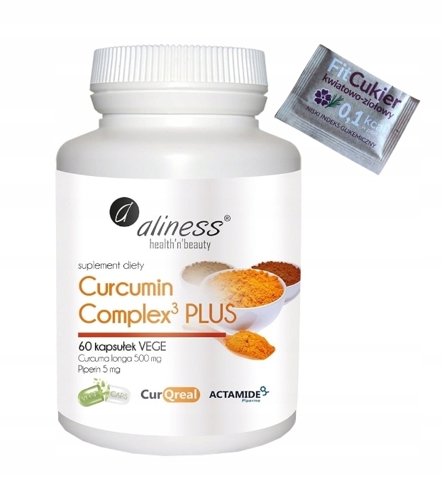 Kompleks kurkuminy Aliness 3 PLUS to kompozycja 100% naturalnych kurkuminoidów, w postaci opatentowanej CurQreal ekstrakt z kurkumy. Kompleks składa się z trzech związków chemicznych naturalnie występujących w kurkumie: kurkuminy, desmetoksykurkuminy (DMC) i bis-desmetoksykurkumina (BDMC). Aby zwiększyć biodostępność kurkuminoidów, skład został wzbogacony o naturalne ACTAMID ekstrakt z pieprzu, który zawiera 95% piperyny i jest otrzymywany wyłącznie z ekstrakcji wodnej.