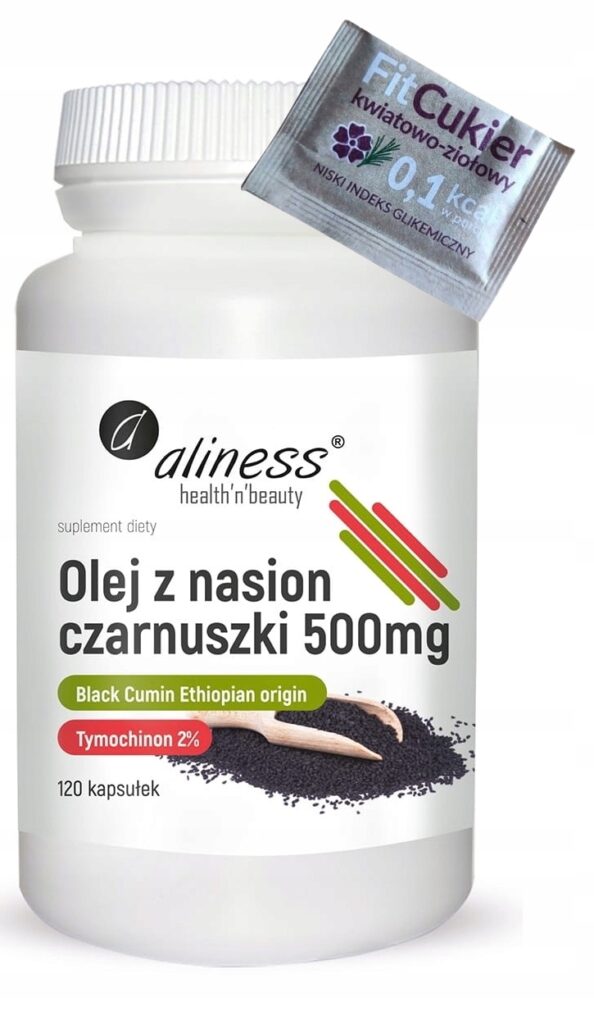 Aliness Olej z nasion czarnuszki to najwyższej jakości olej z nasion czarnuszki pochodzenia etiopskiego. Pochodzenie Etiopskie nasion gwarantuje znacznie wyższą zawartość tymochinonu w produkcie (aż 2%) niż w przypadku innych odmian oraz zachowuje wszystkie składniki odżywcze nasion. Zawiera wysoką ilość kwasu oleinowego, linolowego oraz palmitynowego.
