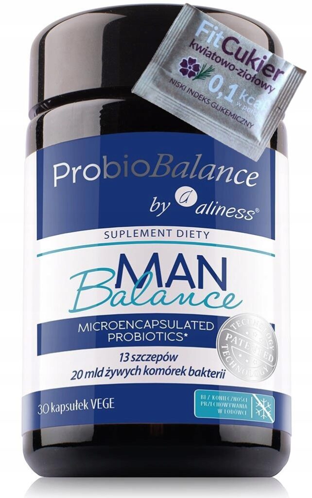 ProbioBalance by Aliness® MAN Balance zawiera specjalnie wyselekcjonowane szczepy bakterii dedykowane mężczyznom.