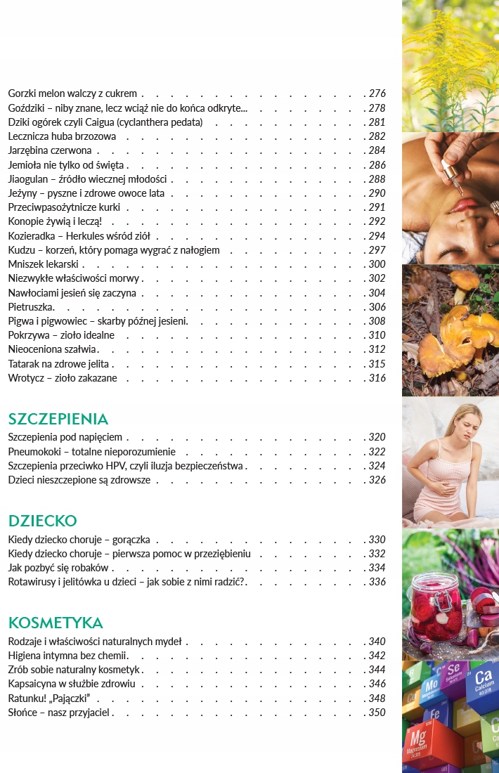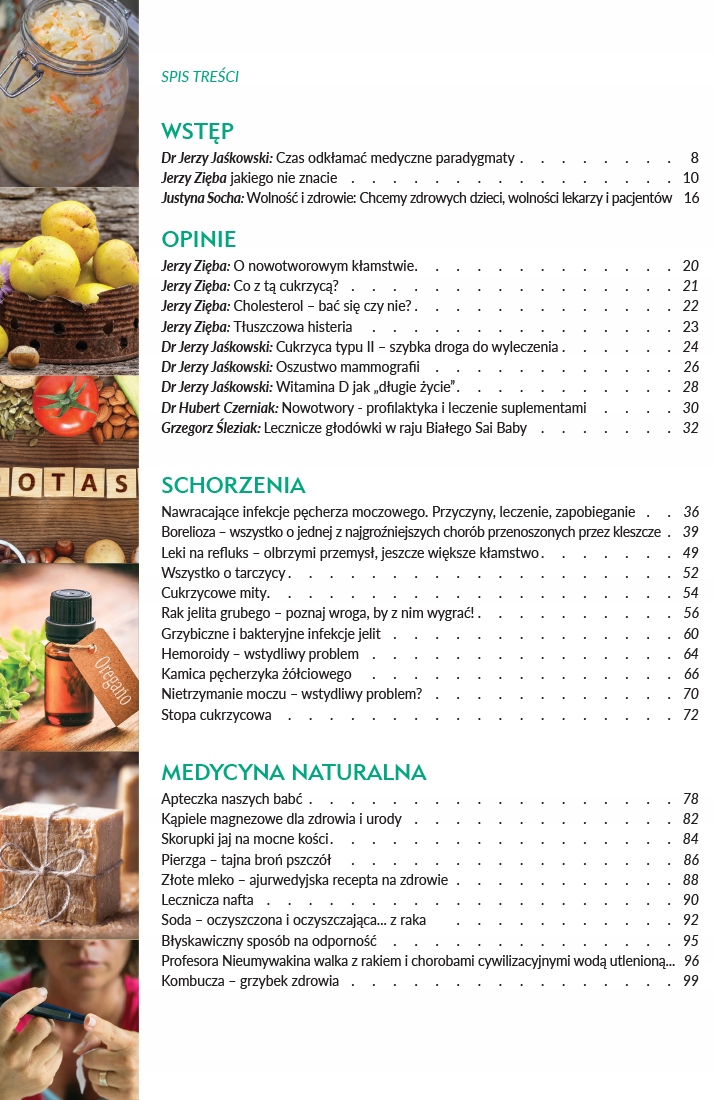 To pierwsza część almanachu będącego zbiorem wybranych, najciekawszych artykułów z początkowych 17 numerów miesięcznika „Zdrowie bez leków” — czasopisma, które przebojem weszło na polski rynek wydawniczy i w krótkim czasie osiągnęło na nim sukces. Zawdzięcza go pasji i poczuciu misji, które towarzyszą jego twórcom. „Zdrowie bez leków” to odpowiedź na coraz większe zainteresowanie zdobywaniem wiedzy o własnym ciele i psychice. Wśród autorów publikujących na łamach „ZBL” znajdzie Czytelnik zarówno autorytety medyczne, profesorów, lekarzy, jak i pasjonatów zdrowia, praktyków zarówno medycyny zachodniej, jak i wschodniej. Jedno jest pewne — to osoby z głęboką wiedzą z zakresu zdrowia, którą chętnie przekazują Czytelnikom.