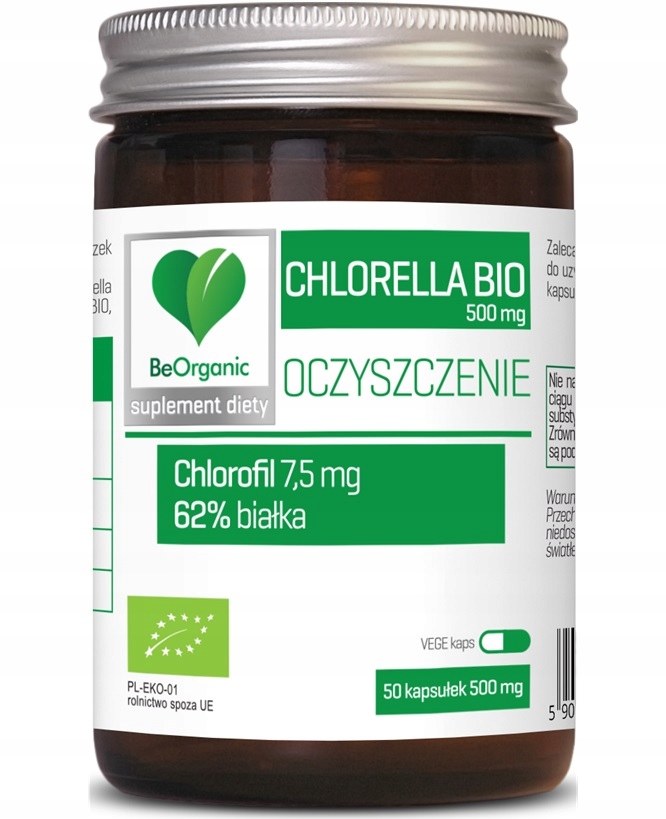BeOrganic, Chlorella BIO 500 mg gromadzi wszystkie powyższe składniki odżywcze oraz wiele innych. Jest to jeden z najczystszych i najbezpieczniejszych produktów na rynku.