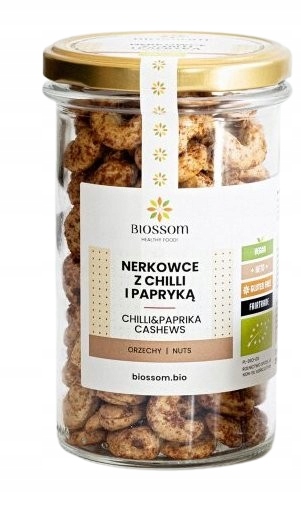 BIO nerkowce FAIRTRADE prażone z chilli i papryką to ostra, pikantna przekąska, która zachwyci Cię swoim smakiem. Lepsza od chipsów i paluszków – zawiera mnóstwo białka. Idealna na każdą okazję – imprezę i do przegryzania w zaciszu domowym przy książce czy podczas ulubionego serialu. Wysokobiałkowe orzechy nerkowca przyprawione chilli mają wyrazisty, ostry smak. Najlepsza propozycja dla wszystkich, którzy szukają ekologicznej i zdrowej alternatywy dla słonych i ostrych przekąsek.