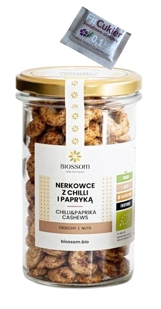 BIO nerkowce FAIRTRADE prażone z chilli i papryką to ostra, pikantna przekąska, która zachwyci Cię swoim smakiem. Lepsza od chipsów i paluszków – zawiera mnóstwo białka. Idealna na każdą okazję – imprezę i do przegryzania w zaciszu domowym przy książce czy podczas ulubionego serialu. Wysokobiałkowe orzechy nerkowca przyprawione chilli mają wyrazisty, ostry smak. Najlepsza propozycja dla wszystkich, którzy szukają ekologicznej i zdrowej alternatywy dla słonych i ostrych przekąsek.