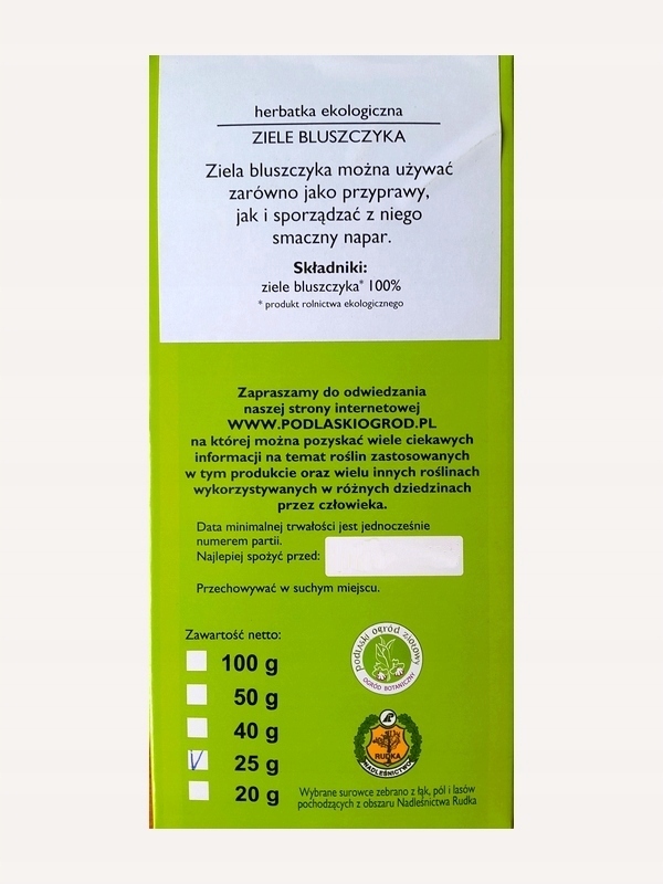 Napisz pierwszą opinię o „Dary Natury BIO BLUSZCZYK ZIELE Kurdybanek EKO 25g”
