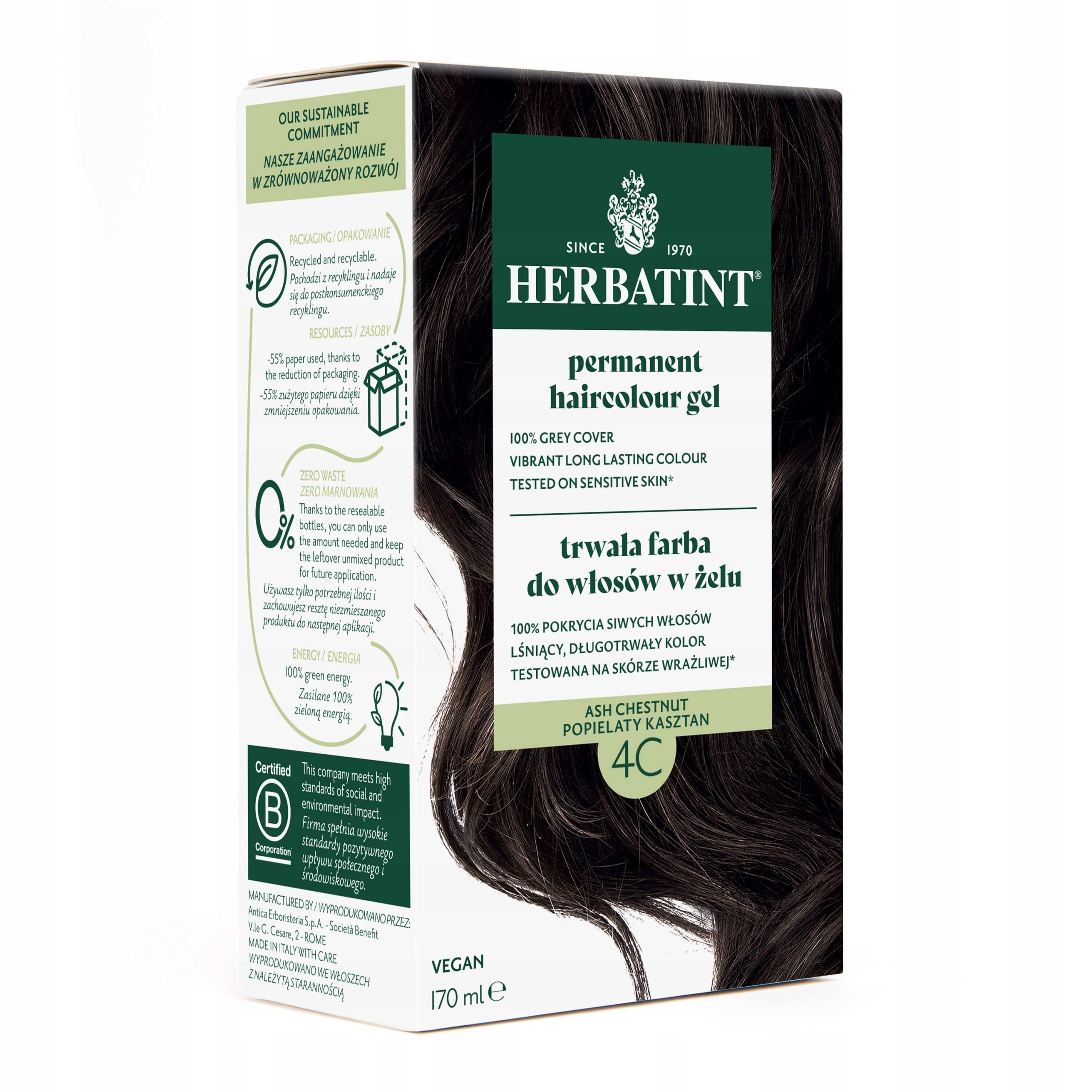Herbatint jest pierwszą farbą do włosów w żelu zawierającą roślinne ekstrakty BIO, oczywiście bez amoniaku.