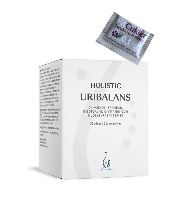 Holistic UriBalans jest suplementem diety zawierającym ekstrakt z żurawiny CranMax®, bakterie kwasu mlekowego i monosacharyd D-mannozę. CranMax® jest ekstraktem z całych owoców żurawiny i charakteryzuje się wysoką zawartością PAC (proantocyjanidyn). Produkt zawiera bakterie kwasu mlekowego L. rhamnosus GG, L. gasseri i L. acidophilus oraz FOS (fruktooligosacharydy), które odżywiają bakterie kwasu mlekowego.