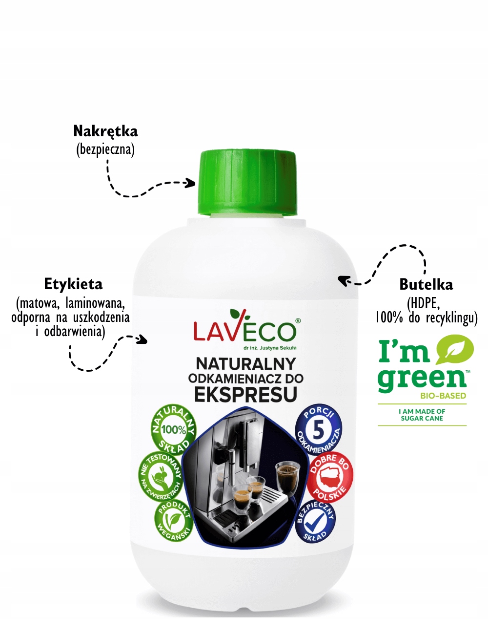 1. Bezpieczny skład – nasz produkt jest na bazie 100% naturalnego, pozyskiwanego w sposób biologiczny kwasu mlekowego oraz zawiera inne substancje naturalne, które gwarantują skuteczność odkamieniania domowych i profesjonalnych ekspresów do kawy