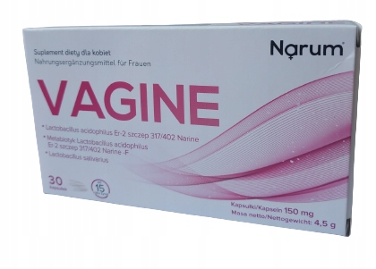 Narum Vagine w formie kapsułek stosowany w celu przywrócenia równowagi mikroflory dróg rodnych.