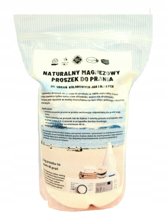 Magnezowy proszek do prania to produkt w 100% naturalny. W swoim składzie zawiera tylko naturalne składniki, które nie drażnią skóry. Tworzony jest bez oleju palmowego i tłuszczy zwierzęcych, jest wegański.