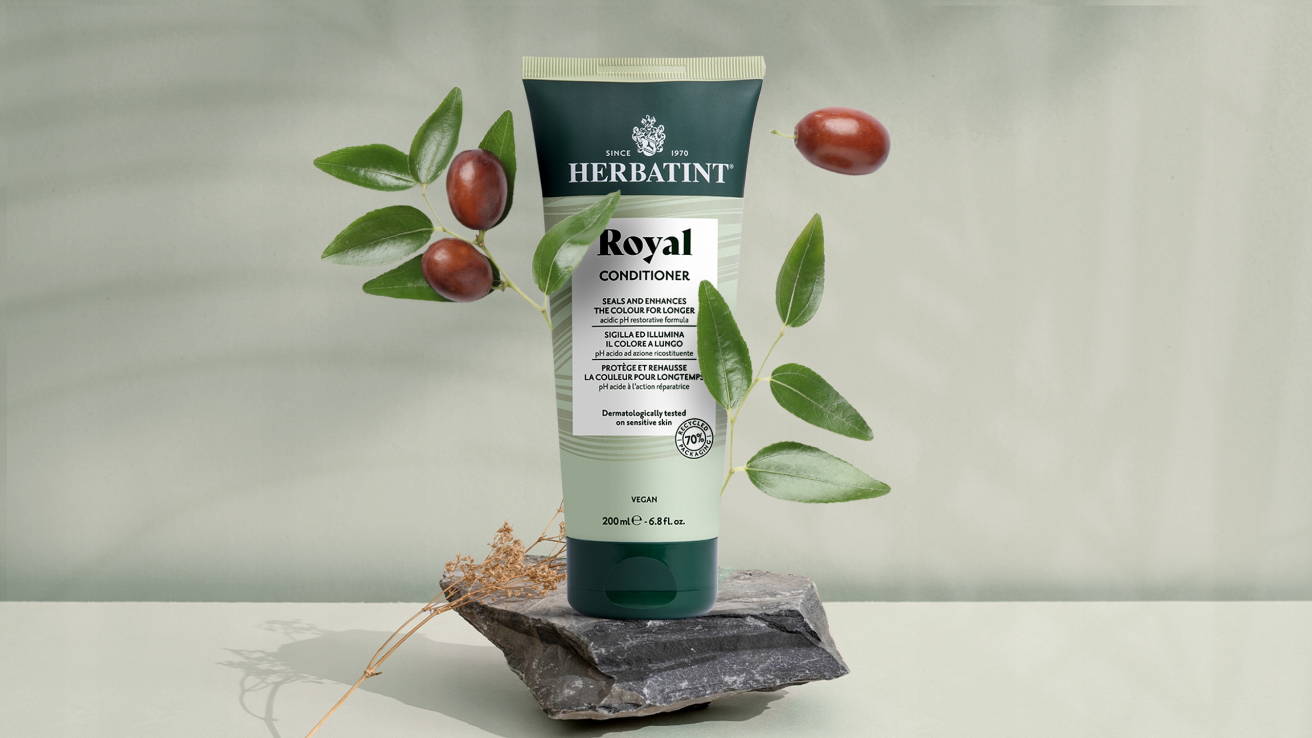BESTSELLER linii pielęgnacyjnej Herbatint, wcześniej znana jako Royal Cream, ma unikalną formułę, która przedłuża kolor i utrzymuje lśniące włosy przez długi czas.