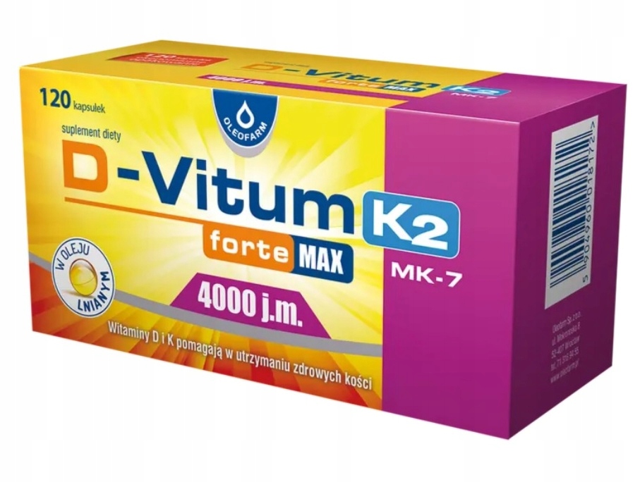 Produkt D-Vitum forte Max 4000 j.m. K2 zawiera olej lniany o wysokiej zawartości kwasów tłuszczowych omega-3, do których należy kwas alfa-linolenowy (ALA). Kwas alfa-linolenowy pomaga w utrzymaniu prawidłowego poziomu cholesterolu we krwi. Korzystne działanie występuje w przypadku spożywania 2 g ALA dziennie.