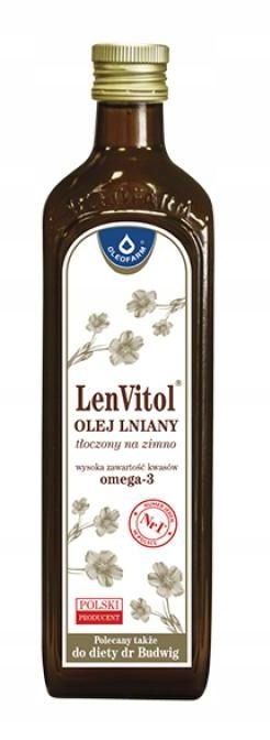 Olej lniany LenVitol powstaje tradycyjną metodą tłoczenia na zimno. Charakteryzuje się wysoką zawartością tłuszczów wielonienasyconych, oraz kwasów tłuszczowych omega-3. To oznacza, że zawiera wielonienasycone kwasy tłuszczowe: kwas alfa-linolenowy (omega-3) i kwas linolowy (omega-6).