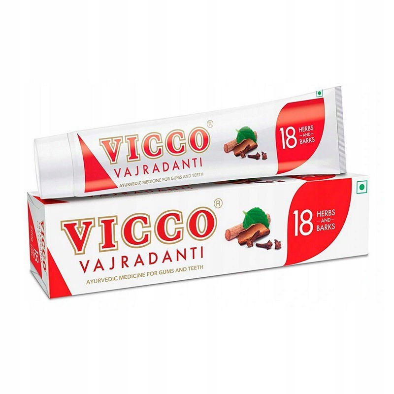 Skład INCI: Fine Chalk, Water, Sorbitol, Sodium Lauryl Sulphate, Gum Tragacanth, Extracts of Indian Licorice Root, Currant, Common Jujube, Rose Apple, Barleria Prinitis, Asian Holly Oak, Persian Walnut, Prickly Ash, Indian Almond, Bedda Nut, Bishop’s Weed, Sarsaparilla, Catechu, Sappan Wood, Medlar, Cinnamon, Gum Arabic, Bengal Madder, Mayweed. Flavour, Sodium Saccharin, Methyl Hydroxy Benzoate Sodium.