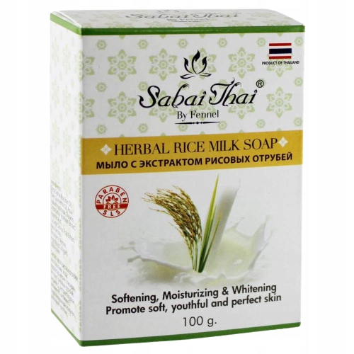 Sabai Thai Zawarty w mydle wyciąg z kiełków ryżu jest bogaty w przeciwutleniacze, a także witaminę E. Mydło pomaga utrzymać i zrównoważyć koloryt skóry, pozostawiając ją jedwabiście gładką i nawilżoną.