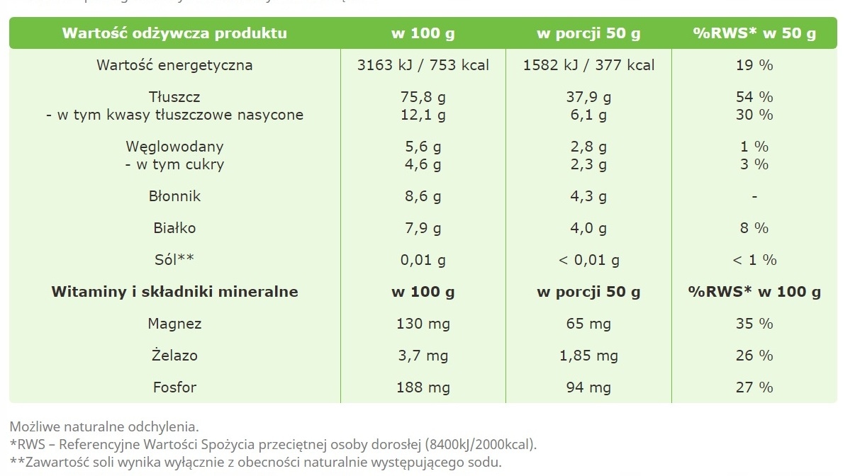 Wartość odżywcza w 100 g/ w porcji 0,5 g: