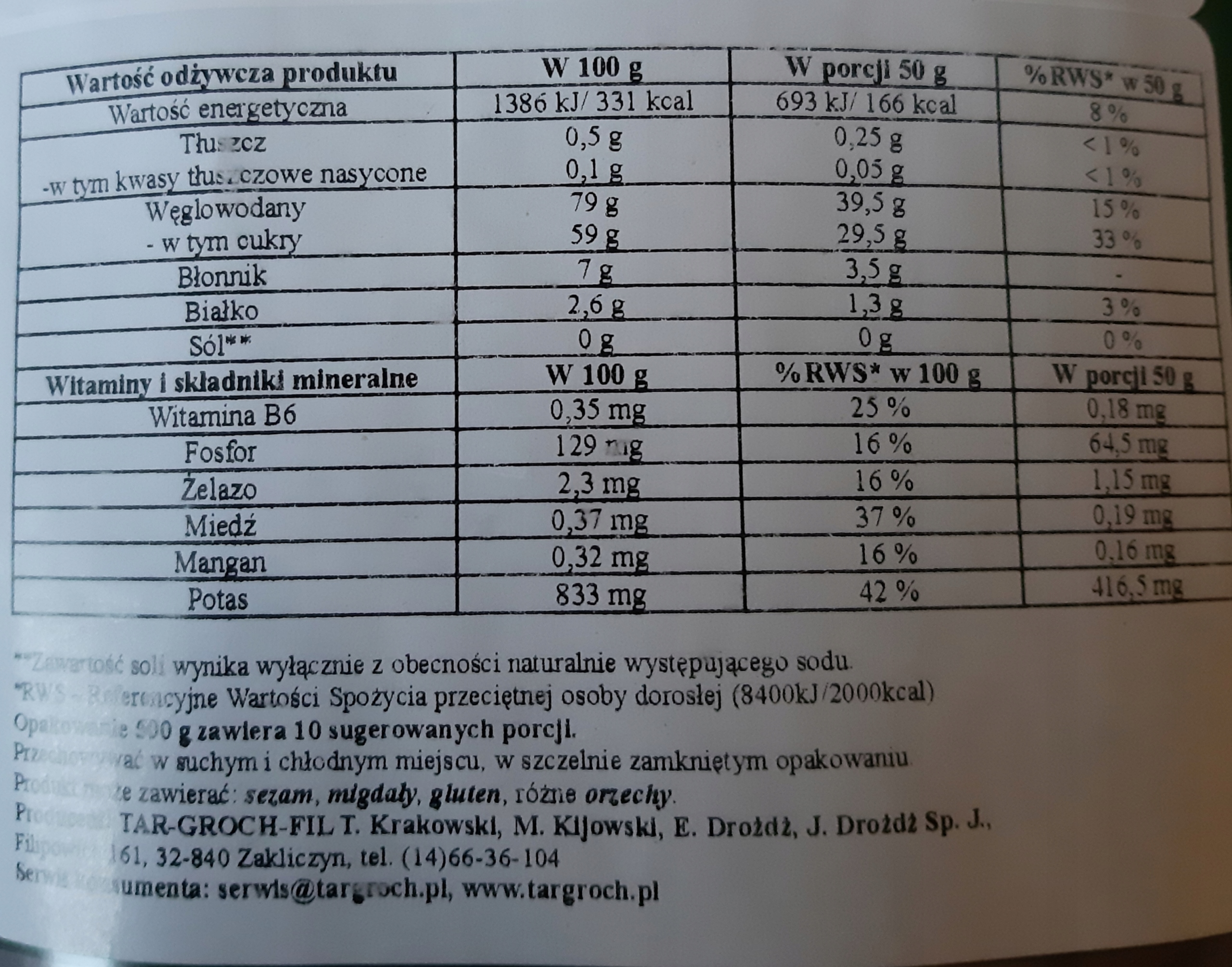 | Wielkość opakowania (g) | 500 g |