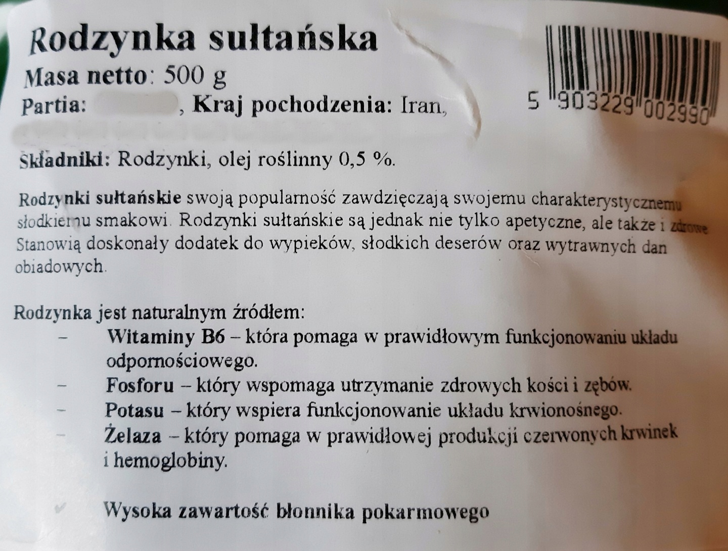 | Nazwa handlowa | rodzynki |