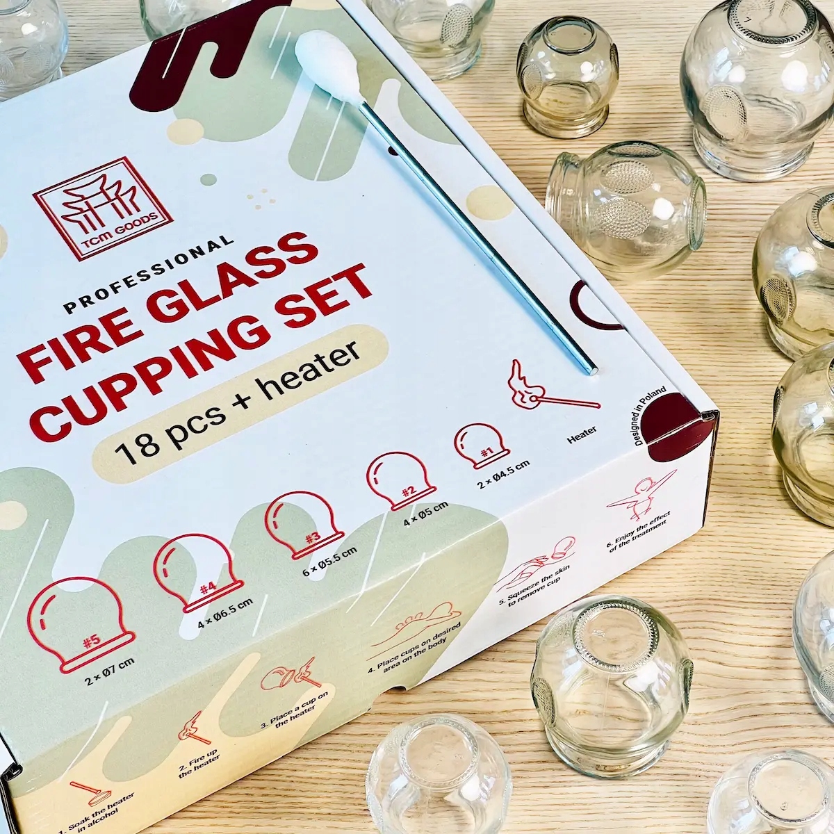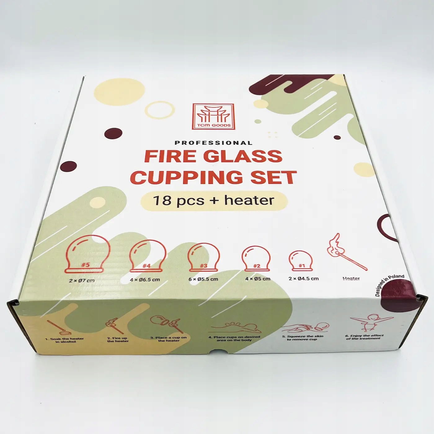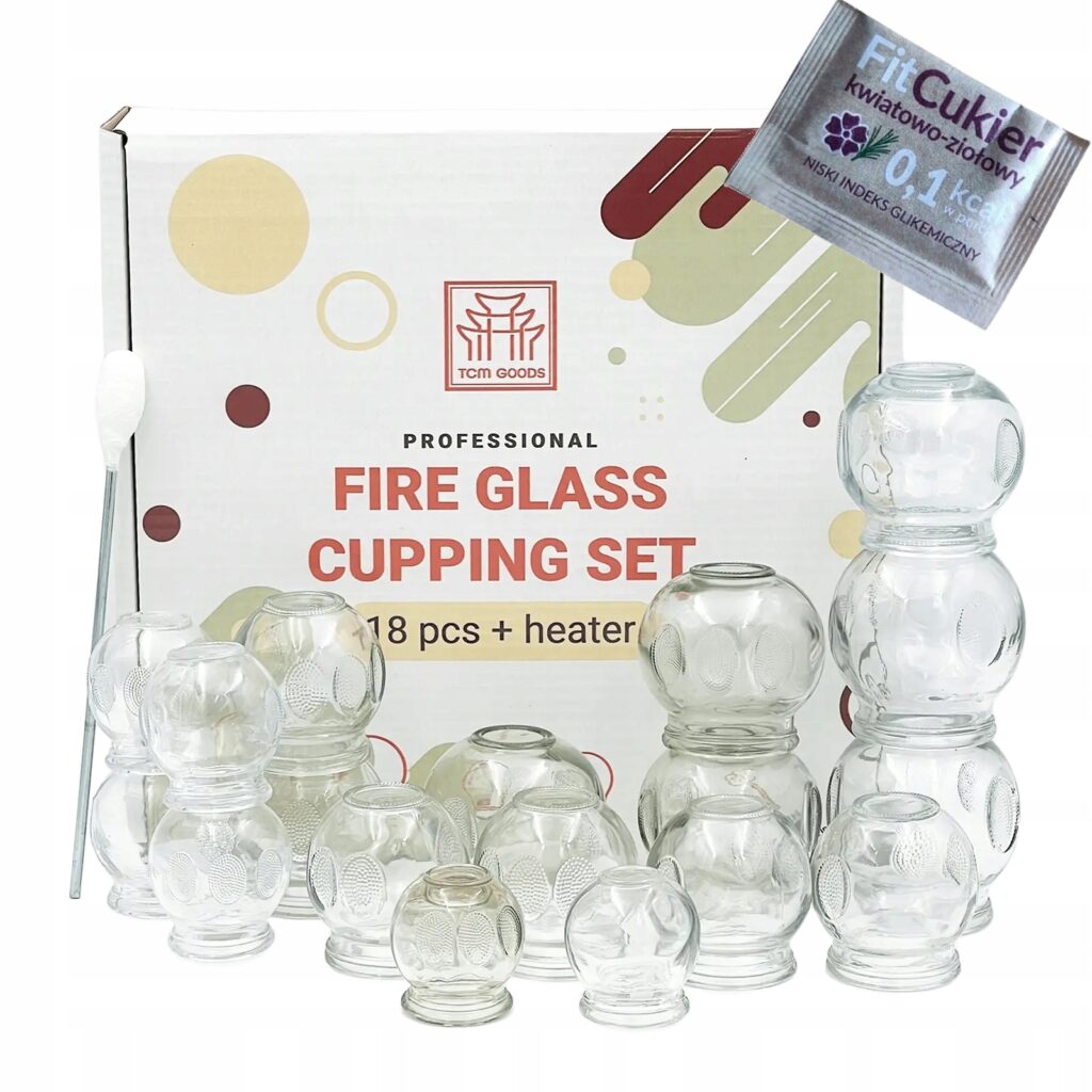 Zestaw baniek szklanych do stawiania ogniowego polskiej marki TCM Goods . W skład zestawu wchodzi 18 baniek szklanych ogniowych oraz ogrzewacz do baniek (kwacz). Zestaw zawiera uniwersalne bańki przeznaczone do terapeutycznego stawiania na plecach , tułowiu i kończynach , w klasycznych zabiegach bańkotereapii oraz w Tradycyjnej Medycynie Chińskiej (TCM).