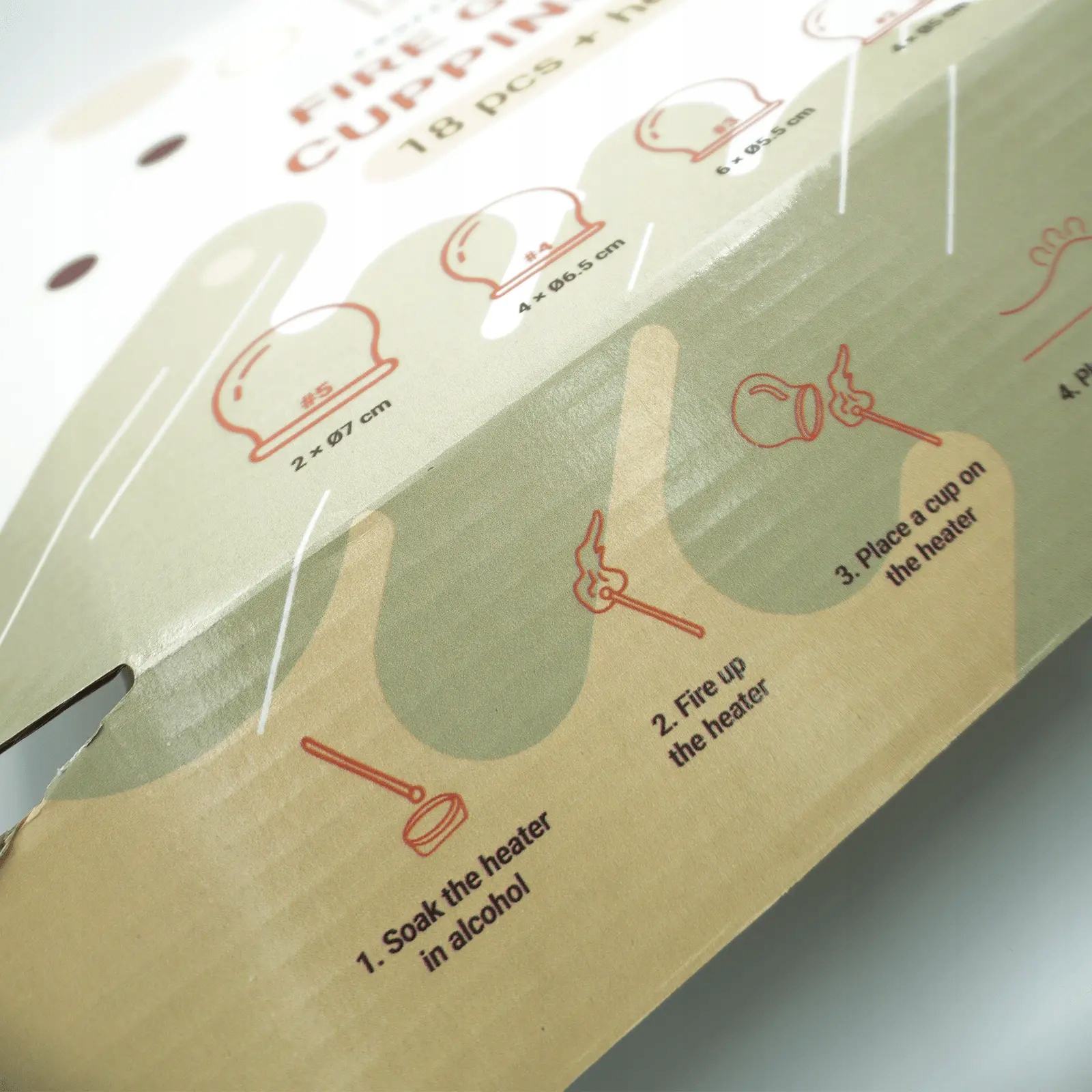 Zestaw zawiera szklane bańki do klasycznych zabiegów stawiania ogniowego. Stawiając bańki przy pomocy ognia nagrzewamy bańkę od wewnątrz przy użyciu kwacza (ogrzewacza). Następnie szybko przykładamy bańkę do wybranego miejsca na ciele. Gorąco powstałe w bańce powoduje, że bańka zasysa się na skórze. Aby łatwo i bezboleśnie zdjąć bańkę należy ścisnąć skórę w pobliżu miejsca postawienia bańki.