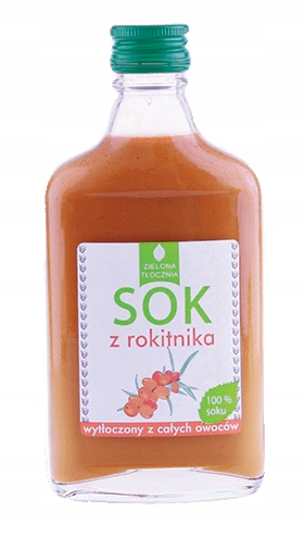 Skład: 100% sok z rokitnika tłoczony na zimno z całych owoców i poddany lekkiej pasteryzacji.