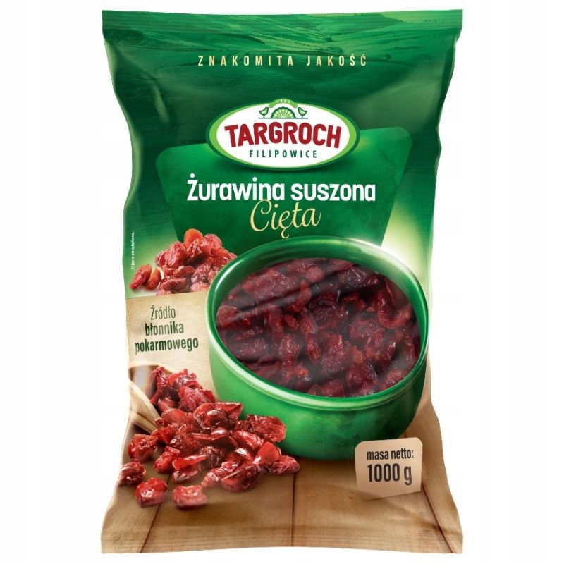 Żurawina suszona 60%, cukier 39%, olej słonecznikowy 1%.